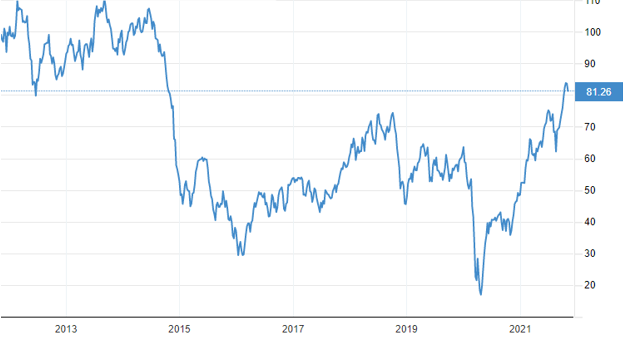 After the OPEC decision, prices remained in the $40-$60 per barrel range from 2016-2020, with only brief periods above and below these levels. The prior 5-10 years saw prices steadily in the $75-$100 range with OPEC supporting prices at these levels, as evidenced below.