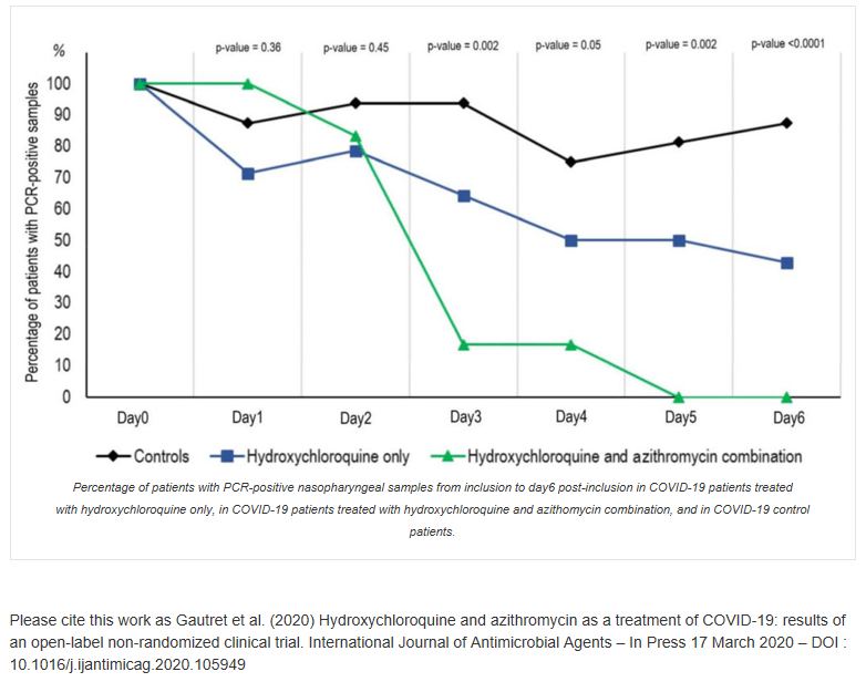 While early stage and small scale, the test result above does show a promising initial result for the use of a Hydroxychloroquine and Azithromycin treatment.