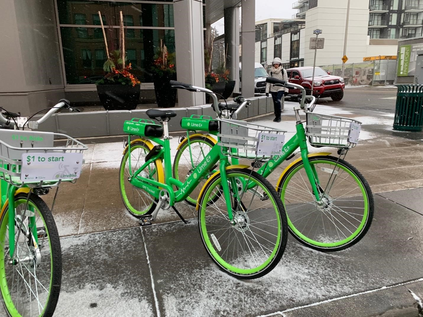 I was initially skeptical of the introduction and timing of the e-bike share program that recently launched in Calgary. On October 29th, San Francisco based Lime placed 250 bright green electric bikes around downtown Calgary and the surrounding area. I wondered if the company had ever checked the weather or visited Calgary in October. My childhood memories of Halloween are of trudging around in the snow, with a ski jacket over my costume to brave the freezing temperatures. The new e-bikes offer a battery powered pedal assist feature, but will the batteries work when it is -30C? How are people going to be safe riding around when there is a foot of snow on the ground or a sheet of ice on the bike lanes from the freeze and thaw of the Chinook winds that blow through every few weeks? Calgary also saw a record setting blizzard on October 1st, that dumped over a foot of snow on the city in a 24-hour period causing endless traffic delays and accidents in the following days. Riding a bike in weather like this would be particularly challenging and highly unsafe. What about helmets? Does anyone really carry a bike helmet around with them? These and many other skeptical thoughts ran through my head as I spotted the first of the 250 bikes that were scattered around the downtown area. Despite the timing and harsh winter climate, Lime selected Calgary as the first Canadian city to launch their service.