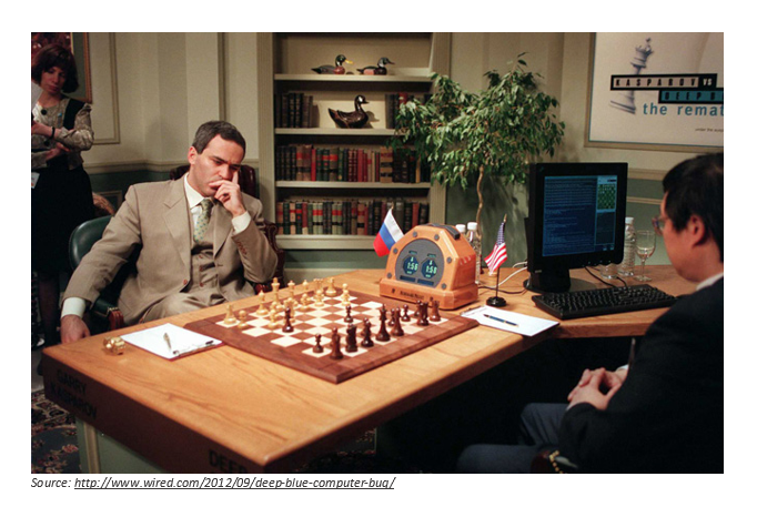 One landmark moment in artificial intelligence was when IBM’s chess computer ‘Deep Blue’ first beat the world chess champion, Garry Kasparov, in 1996. Since then, chess computers have steadily improved and it is now routine for computer chess programs to beat the top players in the world.