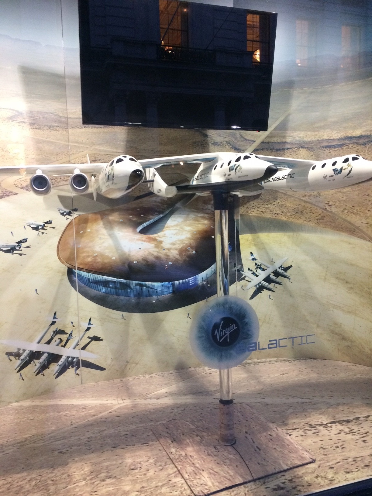 Other players are involved in different aspects of this new space race. Richard Branson’s Virgin Galactic is scheduled to take passengers on a short space flight in a couple of years once their rocket/aircraft system is further developed and approved by flight regulators. They are offering the luxury to fly up to 100km altitude (the technical definition of reaching outer space) and experience a few minutes of weightlessness as the craft completes a parabolic trajectory and glides back down. On paper the passengers will technically breach the outer part of the atmosphere, however it isn’t truly an orbital flight for any extended period of time. The tickets for these flights cost $USD 250,000 per person and it may seem frivolous to some to pay this much to achieve what is only technically space flight and a few minutes of weightlessness. However, hundreds of people have signed-up and paid their deposits to be among the first commercial space passengers. (For me, riding the 7th largest roller coaster in the world – ‘Leviathan’ - at Canada’s Wonderland in Toronto this past summer and experiencing an 80 degree drop for 300 feet and a series of parabolic arcs for the $50 park admission fee was plenty of excitement and weightlessness). On a recent trip to London England, I passed by the Virgin Galactic storefront and snapped the photo below. Regrettably, it was early on a Sunday morning and the shop was closed, as I was quite interested to go in and at least hear the sales pitch.