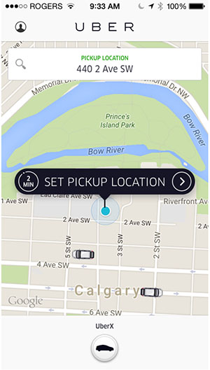 This past weekend I took my first a ride in an Uber car in Calgary after a hockey game and it was a great experience. I am usually frustrated when trying to find a taxi in the city after a sporting event or concert ends and this occasion was no different. When 20,000 people exit the arena at the same time, the available taxis are snapped-up in a hurry. After walking a few blocks and finding that every taxi that approached in the distance was already taken up by another person ahead of me, I pulled out my iPhone to see if Uber was an option. The Uber app showed a number of cars circling within a few blocks of me. I hit the ride request button and within two minutes, the driver was pulling up in front of me in a black Mercedes Benz SUV.