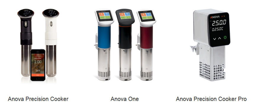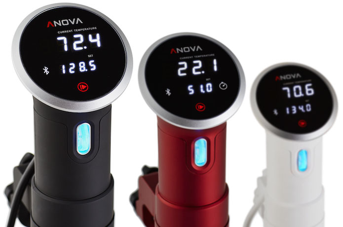 For the foodies out there who are already well versed in this cooking method, you can skip ahead; but for anyone who isn’t familiar with the concept, please read on. A sous-vide cooker is basically a water bath and circulator that allows a chef to hold a sealed package of food at a precise temperature for hours of slow cooking. In the past these devices were quite expensive and generally a niche product that was found in the kitchen of a high-end restaurant. In recent years the precision control systems and technology involved have come down in price, and the interest from home users has brought a number of different models to market in the $150-$300 range (Anova has entry level units priced at $USD 179 and $USD 199, plus shipping). The theory behind this cooking method is that it keeps the food that you are cooking, like a steak for example, at a set temperature below boiling. You can keep a steak at medium rare temperature of 63 degrees Celsius (145 degrees Fahrenheit) – and it will not cook beyond this point. The middle of the steak will stay at medium rare for hours without over-cooking. With enough time at set temperature of medium rare or greater, the relatively low heat will have the effect of pasteurizing the meat and kill any essentially dangerous bacteria that could be resident in the meat. You can then remove the steaks and sear each side on a grill or in a very hot skillet for a short time and serve right away without wondering if you have reached the right internal temperature. There are other applications, like making perfect soft boiled eggs as well as interesting techniques for fish, vegetables and other meats.